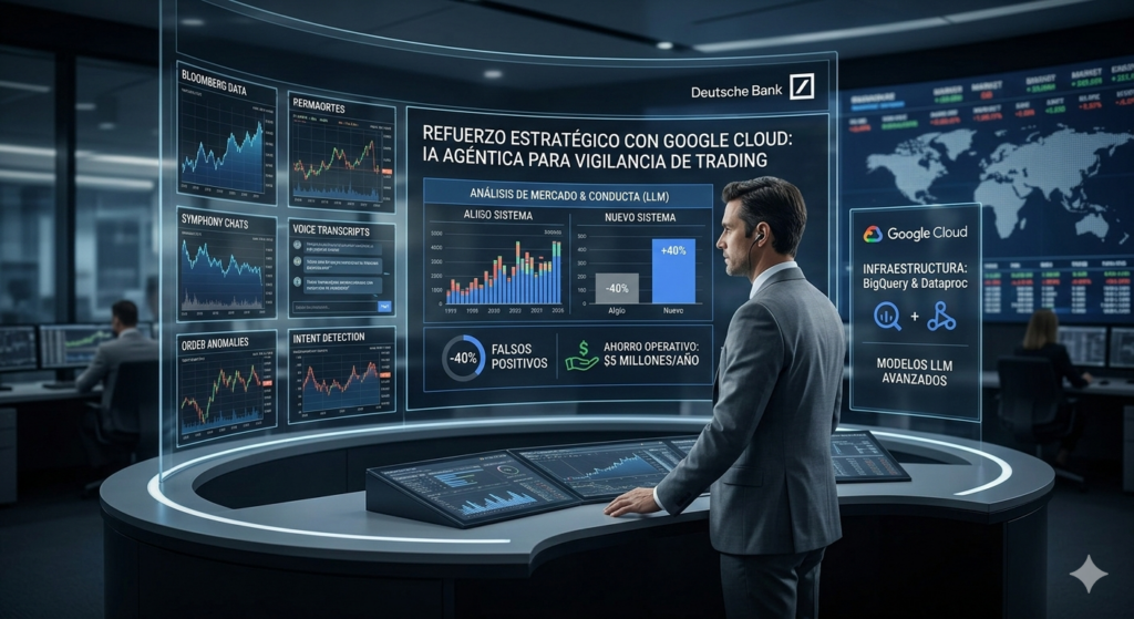 Deutsche Bank y Google Cloud usan IA para detectar abusos de mercado en tiempo real y reducir falsos positivos un 40%.